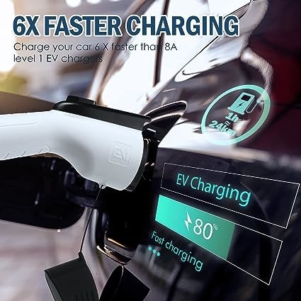 Sạc nhanh hơn 6 lần: Sạc EV cấp 2 với cắm NEMA 14-50 nạp xe của bạn trung bình nhanh hơn 6 lần so với bộ sạc tiêu chuẩn, cung cấp 24 dặm chỉ trong 1 giờ với sạc 240V